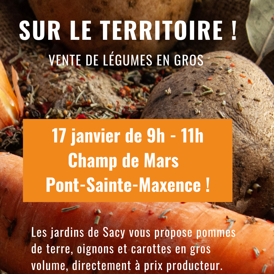 Les jardins de Sacy vous proposent pommes de terre,oignons et carottes en gros volume, directement à prix producteur